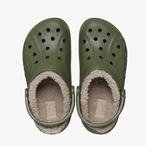 Groene Crocs™ Baya Lined klompen voor heren. Deze gevoerde Crocs zijn ideaal voor de koude wintermaanden! Aan de zijkanten van de Crocs staan grote merklogo’s afgebeeld, en in de ventilatiegaten op de bovenzijde van de klompen kun je Jibbitz™ steken om je schoenen een persoonlijk tintje te geven! De klompen zijn vervaardig doormiddel van de Dual Crocs Comfort™ technologie. Hierdoor kunnen de Baya Lined Crocs jouw voeten ongekende ondersteuning en extra comfort bieden. Gemaakt van synthetisch materiaal, een binnenwerk van textiel en een stevige profielzool.