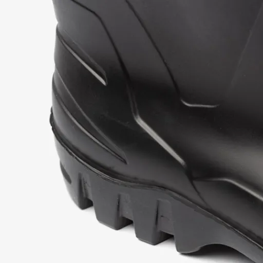 Bescherm uw voeten goed met deze zwarte industrielaarzen voor heren van Dunlop. Gemaakt van PVC en voorzien van een stevige, slipbestendige buitenzool van rubber. De praktische werklaarzen voor milde omstandigheden hebben chemische bestendigheidscode 1. De profielzool zorgt voor een goede grip en demping tijdens het lopen/werken. De laarzen hebben geen stalen neus.