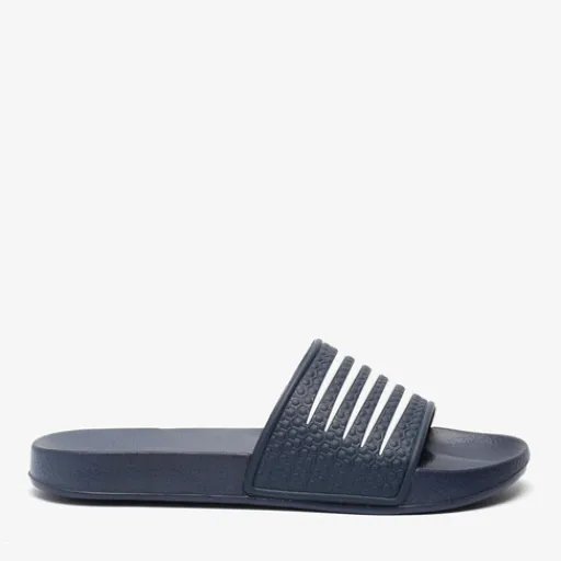 Donkerblauwe badslippers voor dames van Dutchy. De badslippers zijn gemaakt van sneldrogend, synthetisch materiaal en hebben een rubberen profielzool. Voorzien van een comfortabel voetbed en een brede voetband met witte accenten. Dankzij het lichtgewicht materiaal dat snel droogt zijn de badslippers ideaal om mee te nemen op vakantie, naar het zwembad, de sauna of gewoon voor binnenshuis.