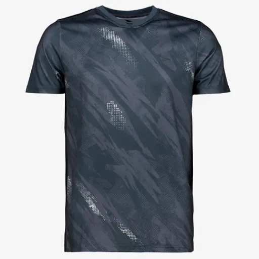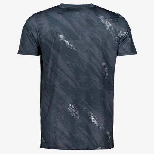 Grijs Dutchy Dry voetbal T-shirt voor heren. Voorzien van een kleine V-hals, korte mouwen en grafisch all over print in de kleuren grijs en wit. Het shirt is vervaardigd van sneldrogend materiaal en heeft een comfortabele pasvorm. Zo kan jij je vrij bewegen en blijf je droog tijdens het trainen. Dutchy Dry artikelen zijn lichtgewicht, zweetafvoerend en vochtregulerend. Gemaakt van 100% polyester.