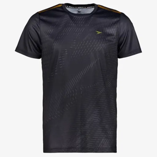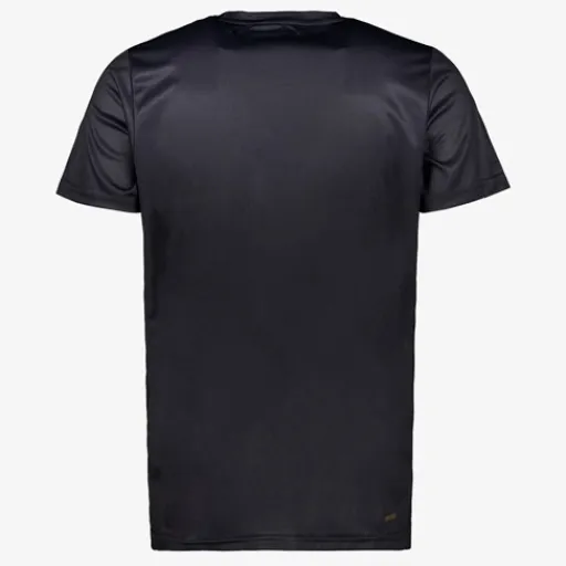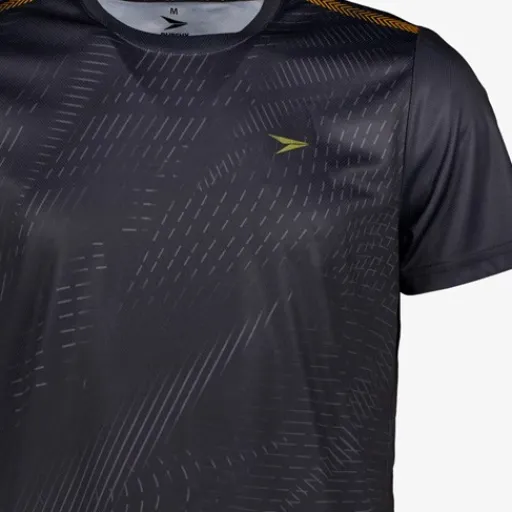 Zwart Dutchy Dry voetbal T-shirt voor heren. Voorzien van korte mouwen, een ronde hals en een grijze all over print. Het shirt is vervaardigd van sneldrogend materiaal en heeft een comfortabele pasvorm. Zo kan jij je vrij bewegen en blijf je droog tijdens het trainen. Dutchy Dry artikelen zijn lichtgewicht, zweetafvoerend en vochtregulerend. Gemaakt van 100% polyester.