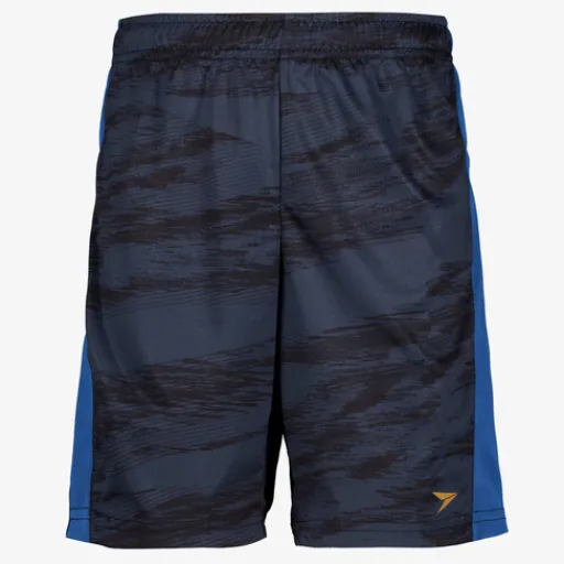 Blauwe Dutchy Dry voetbalshort voor kinderen. Voorzien van een elastische tailleband, een all over print, blauwe stroken langs de zijkanten en een merkopdruk op de bovenbeen. De short is vervaardigd van sneldrogend materiaal en heeft een fijne pasvorm. Zo kan jij je vrij bewegen tijdens het trainen en blijf je droog. Dutchy Dry artikelen zijn lichtgewicht, zweetafvoerend, vochtregulerend en duurzaam. Gemaakt van 100% polyester.