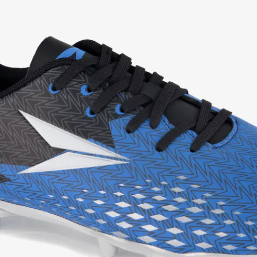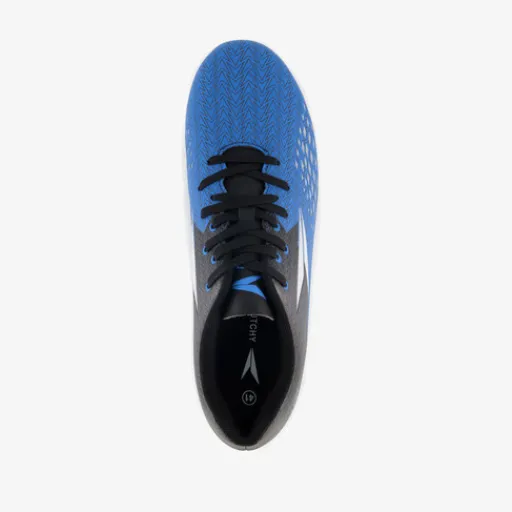 Zwart-blauwe Dutchy FG voetbalschoenen voor heren. Het bovenwerk is gemaakt van imitatieleer, het binnenwerk van textiel en de Firm Ground (FG) buitenzool is van rubber. De FG zool is geschikt voor natuurgrasvelden. Voorzien van een vetersluiting en een comfortabele binnenzool van textiel. Deze is uitneembaar zodat je eventueel je eigen zolen in de schoenen kan dragen. De voetbalschoenen hebben een grafisch ontwerp, witte merklogo’s en een witte buitenzool.