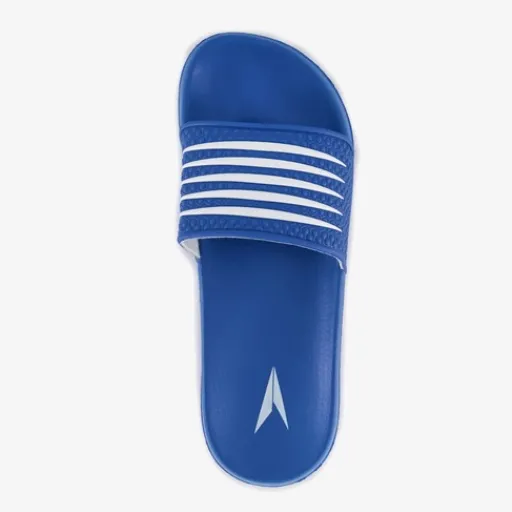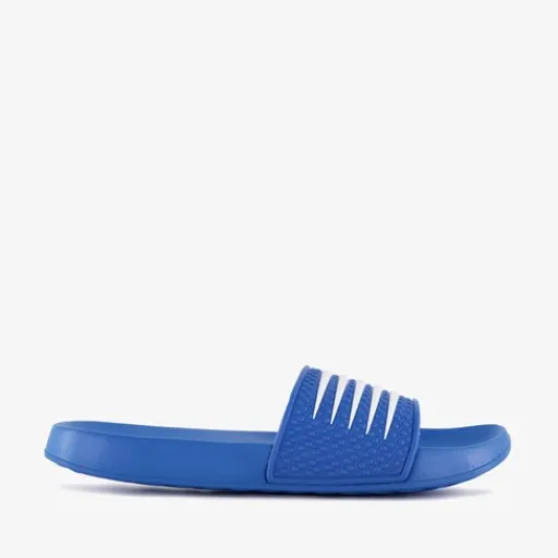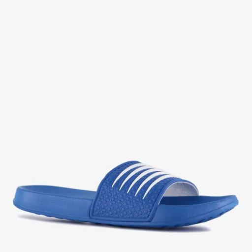 Blauwe heren badslippers met witte strepen van Dutchy. Gemaakt van synthetisch materiaal en voorzien van een stevige profielzool.