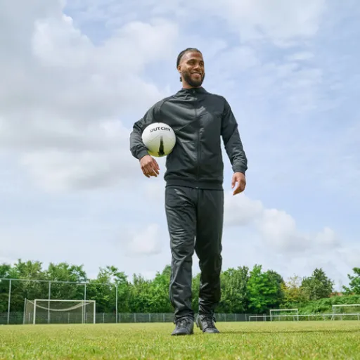 Zwarte trainingsbroek voor heren uit de Dutchy voetbalcollectie. Voorzien van een elastische tailleband en twee steekzakken aan de voorzijde. Deze sportbroek is gemaakt van 100% polyester.