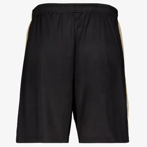 Zwarte voetbalshort met beige accenten voor heren van Dutchy. Voorzien van een elastische tailleband met aantrekkoordjes en mesh inzetten langs de benen die voor ventilatie zorgen. Gemaakt van 100% polyester.