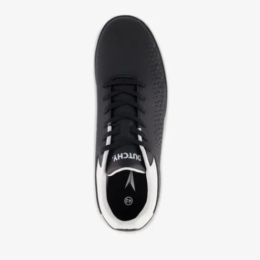 Zwart-witte zaalschoenen voor heren van Dutchy. Het bovenwerk is gemaakt van imitatieleer, het binnenwerk van textiel en de non-marking profielzool is van rubber. Voorzien van een vetersluiting en een comfortabele binnenzool van textiel. Deze is uitneembaar zodat je eventueel je eigen zolen in de schoenen kan dragen. De zaalschoenen hebben perforatiegaten op het bovenwerk die voor ventilatie zorgen.