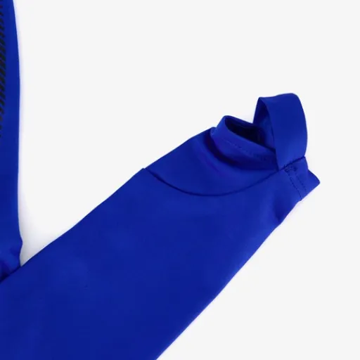 Blauwe voetbal pully voor jongens van Dutchy. Voorzien van een kraagje met een korte rits, lange mouwen met duimgaten en twee steekzakken met ritsen. De rits bij de kraag heeft een kinbescherming. De pully is vervaardigd van elastisch materiaal wat extra comfort biedt. Gemaakt van 91% polyester en 9% elastaan.