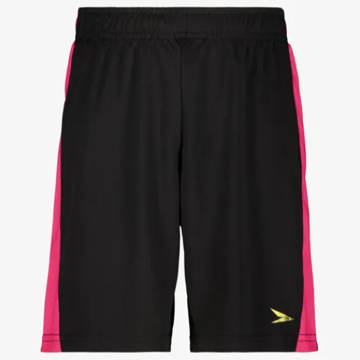 Zwart voetbalshort voor kinderen uit de Dutchy collectie. Voorzien van een elastische tailleband met aantrekkoordjes. Het voetbalbroekje heeft een comfortabele pasvorm zodat je vrij kunt bewegen tijdens het trainen en is vervaardigd van sneldrogend materiaal. Aan de zijkanten zijn roze accenten aangebracht. Dit artikel is gemaakt van 100% GRS gecertificeerd gerecycled polyester (TE-303856).