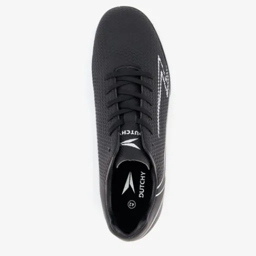 Zwarte Dutchy Pitch IC zaalschoenen voor heren. Gemaakt van imitatieleer met een binnenwerk van textiel en een non-marking profielzool van rubber. Voorzien van een vetersluiting voor een goede pasvorm en een uitneembaar voetbed van textiel.