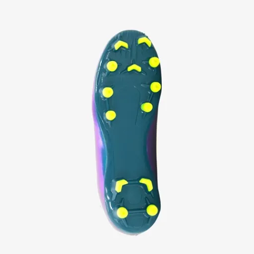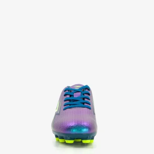 Blauwe Dutchy Pitch voetbalschoenen voor kinderen met gele en paarse details. Gemaakt van imitatieleer, een binnenwerk van textiel en een stevige multiground (MG) profielzool met vaste noppen. Hierdoor heb je perfecte grip op zowel natuur- als kunstgras. Voorzien van een vetersluiting en een comfortabel voetbed van textiel. De Dutchy Shock binnenzolen zorgen voor demping en comfort en hebben een ademend vermogen. Deze zijn uitneembaar zodat je eventueel jouw eigen zolen in de schoenen kan dragen.