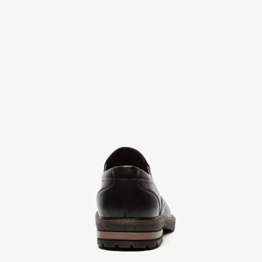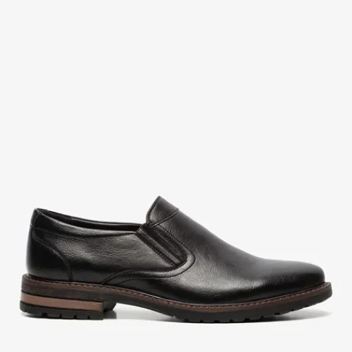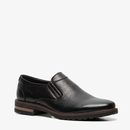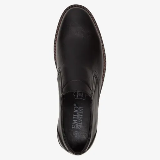 Zwarte instappers voor heren van Emilio Salvatini. Gemaakt van imitatieleer, een binnenwerk van imitatieleer en een stevige profielzool. De schoenen hebben elastische inzetjes voor een makkelijke instap. Het comfortabele voetbed is gemaakt van leer. Deze is niet uitneembaar. De instappers van Emilio Salvatini hebben een lage hak van circa 2 cm.