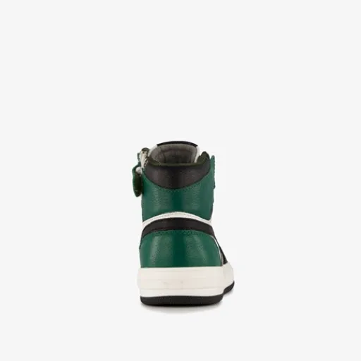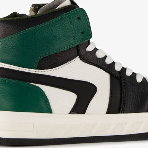 Hoge, zwart met groene sneakers voor jongens van Groot. Het buiten- en binnenwerk zijn gemaakt van leer en de stevige zool met profiel van rubber. Voorzien van een veter- en ritssluiting voor een optimale pasvorm en een comfortabele binnenzool van leer. Deze is uitneembaar zodat je eventueel jouw eigen zolen in de schoenen kan dragen.