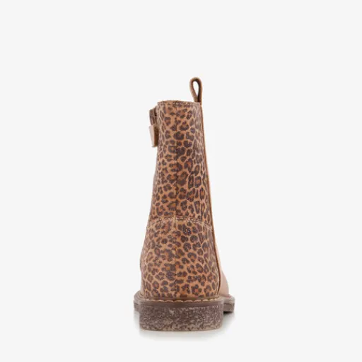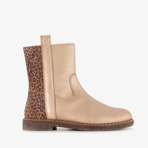 Groot Leren meisjes enkellaarsjes met panterprint details goud Best