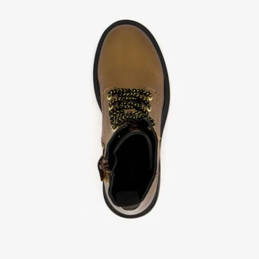 Bronskleurige veterboots voor meisjes van Groot. Het buitenwerk is gemaakt van leer, het binnenwerk van textiel en de stevige profielzool is van rubber. Voorzien van een vetersluiting en een rits met een klittenbandje aan de binnenzijde. Deze gave boots hebben een laag hakje en een schachthoogte van 12 cm. Het comfortabele voetbed van leer is uitneembaar zodat je eventueel jouw eigen zolen in de schoenen kan dragen.