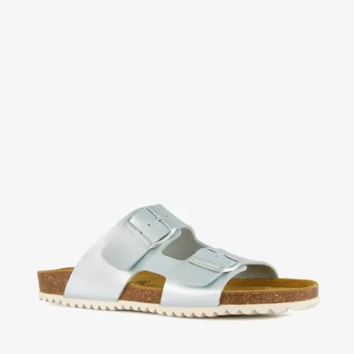 Lichtblauwe bio slippers van Hush Puppies. Gemaakt van imitatieleer en voorzien van een rubberen zool. De slippers hebben een wreefband met twee gespen voor een optimale pasvorm. Het zachte voetbed is gemaakt van leer en bevat memory foam voor extra comfort.