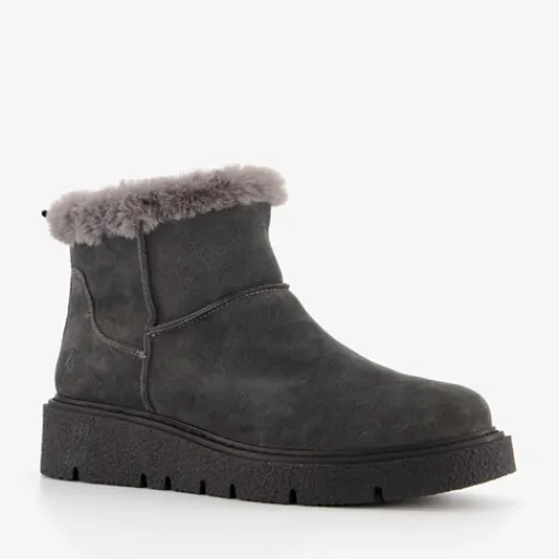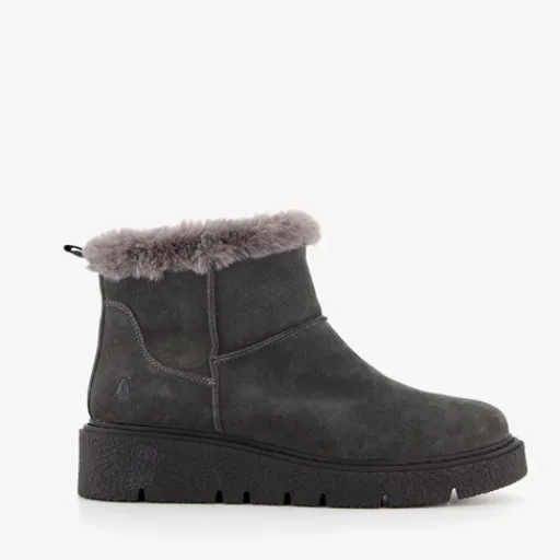 Donkergrijze boots voor dames van Hush Puppies. Gemaakt van suede, een binnenwerk van textiel en een rubberen zool. De boots hebben elastische inzetten voor een makkelijke instap. Het vaste voetbed is gemaakt van leer. De boots hebben een zachte, warme voering van imitatiebont en een dikke zool van circa 4 cm. De schachthoogte bedraagt 10 cm.
