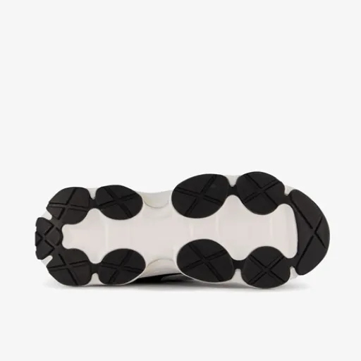 Dad sneakers voor dames van Hush Puppies. Gemaakt van leer en mesh, een binnenwerk van leer en een rubberen zool. De sneakers hebben een vetersluiting en comfortabel voetbed van imitatieleer. Deze is niet uitneembaar. Voorzien van zwarte en zilverkleurige accenten op het bovenwerk en een chunky zool.