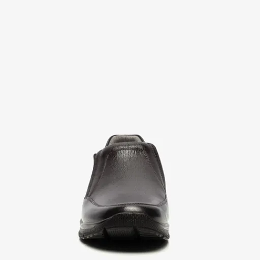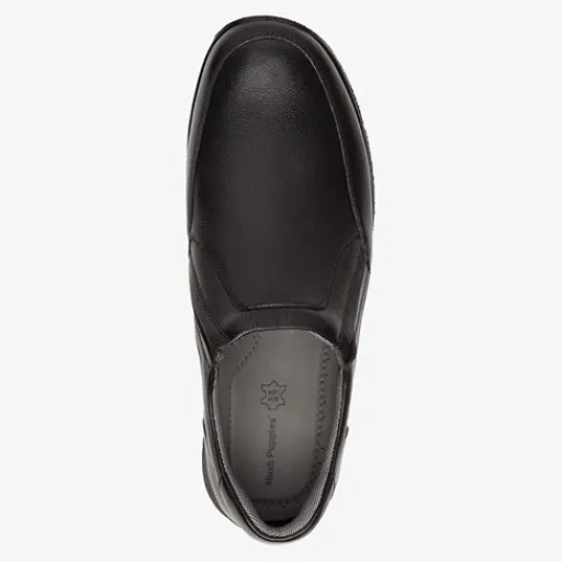 Zwarte instappers voor heren van Hush Puppies. Gemaakt van leer, een binnenwerk van textiel en leer en een stevige profielzool. De schoenen hebben elastische inzetjes voor een makkelijke instap. Het comfortabele voetbed is gemaakt van leer. Deze is uitneembaar. De instappers van Hush Puppies hebben een flexibele buitenzool voor een goede grip en demping en beschikken over een brede leest.