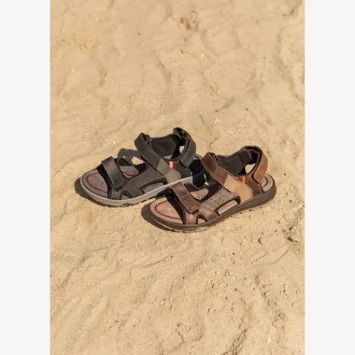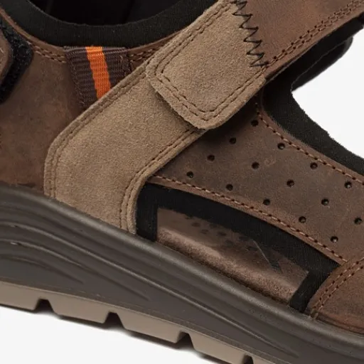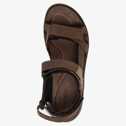 Bruine sandalen voor heren van Hush Puppies. Gemaakt van leer, een binnenwerk van leer en een stevige profielzool. De sandalen hebben klittenbandsluitingen op de hiel, wreef en tenen voor een makkelijke instap en aansluitende pasvorm. Het comfortabele voetbed is gemaakt van imitatieleer. Deze is uitneembaar zodat je je eigen zooltjes in de schoenen kunt dragen. De sandalen van Hush Puppies hebben een rubberen zool die grip en demping biedt.
