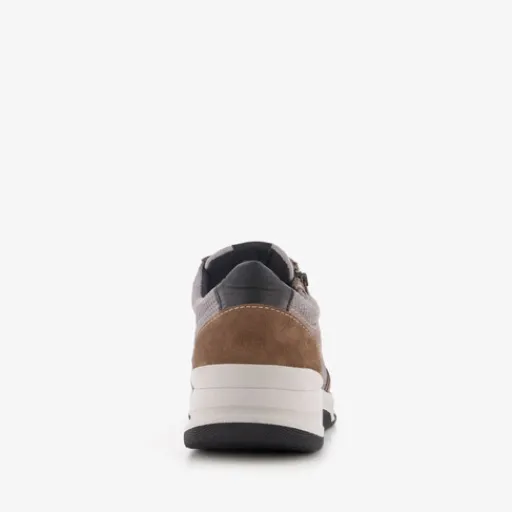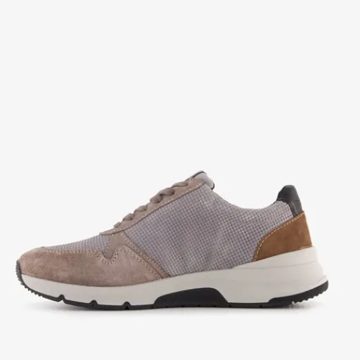 Grijze Hush Puppies sneakers voor heren. Het bovenwerk is van leer gemaakt, het binnenwerk van imitatieleer en de stevige zool met profiel is van rubber. Voorzien van een veter- en ritssluiting en een comfortabele binnenzool van leer. Deze is uitneembaar zodat je eventueel je eigen zolen in de schoenen kan dragen. De sneakers hebben beige en bruine details en een wit-zwarte buitenzool.