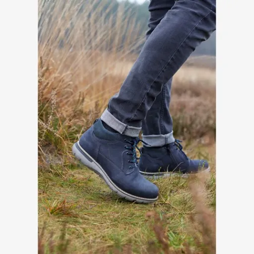 Hoge, blauwe veterschoenen van Hush Puppies. Gemaakt van leer, een binnenwerk van textiel en een stevige profielzool. De schoenen hebben een vetersluiting en rits voor gemak tijdens het aan- en uittrekken. Het comfortabele voetbed is gemaakt van leer. Deze is uitneembaar zodat je je eigen (steun)zolen in de schoenen kunt dragen. De veterschoenen van Hush Puppies hebben een rubberen zool die grip en demping biedt.