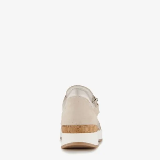 Beige sneakers voor dames van Hush Puppies. Gemaakt van suede, een binnenwerk van leer en een rubberen zool. De sneakers hebben een rits- en vetersluiting voor een makkelijke instap. Het comfortabele voetbed is gemaakt van leer. Deze is uitneembaar.