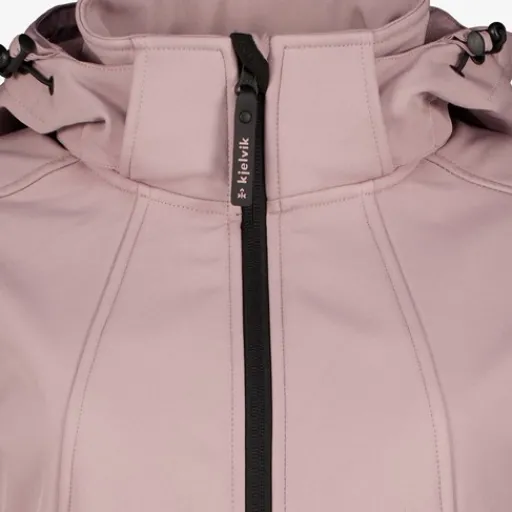 Lila softshell jas voor dames van Kjelvik. Voorzien van een ritssluiting met kinbeschermer en een afneembare capuchon met aansnoerkoordjes. De jas heeft twee zakken met ritsen en verstelbare boorden met klittenband. Vervaardigd van ademend en waterafstotend materiaal. De softshell jas is gemaakt van 94% polyester en 6% elastaan.