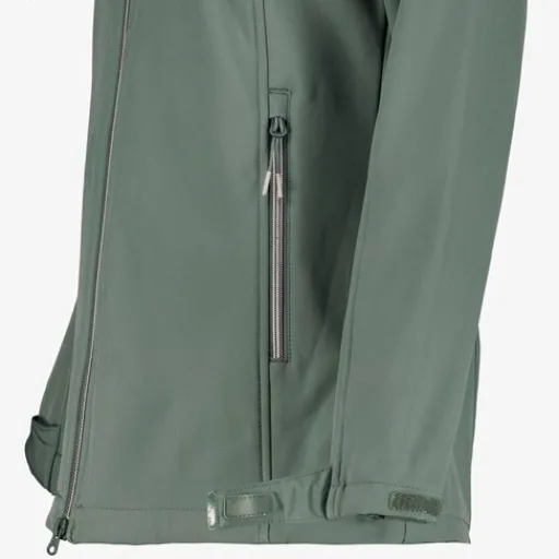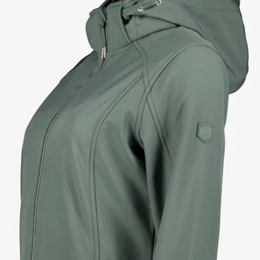 Groene softshell jas voor dames van Kjelvik. Voorzien van een ritssluiting met kinbeschermer en een afneembare capuchon. De jas heeft twee zakken met ritsen en is in maat verstelbaar bij de boorden. Vervaardigd van ademend en waterafstotend materiaal met stretch voor draagcomfort. De softshell jas is gemaakt van 94% polyester en 6% elastaan.