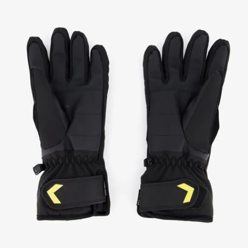 Zwarte softshell skihandschoenen voor heren van Kjelvik. Voorzien van elastiek in de boorden, klittenbandsluiting en een clipsluiting. De skihandschoenen hebben een goede grip in de handpalm. Softshell is een warmte regulerend en waterafstotend materiaal zodat je droog en comfortabel op de piste blijft. De skihandschoenen zijn gemaakt van polyester.