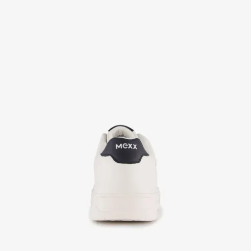 Witte sneakers voor heren van Mexx. Gemaakt van imitatieleer, een binnenwerk van textiel en een rubberen zool. De sneakers hebben een vetersluiting en comfortabel voetbed van textiel. Deze is uitneembaar. Voorzien van blauwe accenten en merkopdrukken op de tong en hiel.