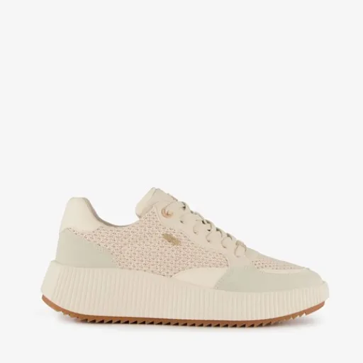 Lage, beige XX by Mexx dames sneakers. Gemaakt van textiel, een binnenwerk van textiel en een rubberen zool. De sneakers hebben een vetersluiting en uitneembaar voetbed.