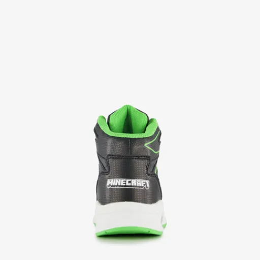 Hoge Minecraft sneakers met airzool voor kinderen. Het buitenwerk is gemaakt imitatieleer, het binnenwerk van textiel en de stevige profielzool is van rubber. Voorzien van een vetersluiting en een comfortabele binnenzool van textiel. Deze zwart-groene sneakers hebben natuurlijk een stoere opdruk van de Minecraft helden en een wit-groene buitenzool. Binnenzool is niet uitneembaar.