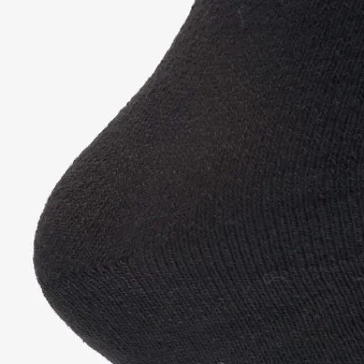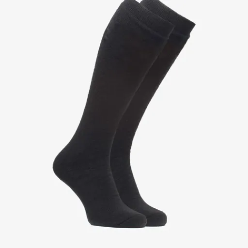 Zwarte skisokken voor heren en dames. De sokken zijn lang van lengte en gemaakt van 30% wol, 30% viscose, 30% acryl en 10% polyester.