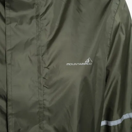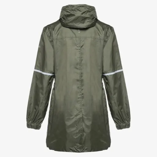 Groene Mountain Peak regenparka voor dames. Voorzien van een ritssluiting met overlappende klittenbandsluitingen zodat wind en regen tegen gehouden worden. De regenjas heeft elastische boorden en heeft een split aan de achterzijde. Voorzien van een capuchon en een waterdichtheid tot 10.000 MM. De winddichte regenjas heeft een handig opbergzakje en op de armen zijn reflecterende accenten aangebracht zodat je goed opvalt in het verkeer. Gemaakt van polyester.