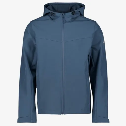Blauwe softshell jas voor heren van Mountain Peak. Voorzien van een ritssluiting met een winstopper achter de rits en een vaste capuchon met aantrekkoorden. De softshell jas heeft zakken met ritsen en verstelbare boorden met klittenband voor een optimale pasvorm. Achter de waterdichte ritsen zitten windstoppers zodat je warm en droog blijft. Vervaardigd van ademend, winddicht en warmte regulerend materiaal met een waterkolom van 3.000 MM. Gemaakt van 95% polyester en 5% elastaan.