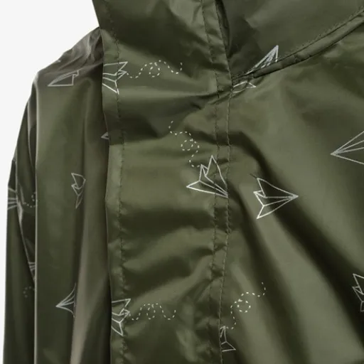 Groene regenjas voor kids van Mountain Peak. Voorzien van een ritssluiting met overlappende klittenbandsluitingen zodat wind en regen tegen gehouden worden. De regenjas heeft elastische boorden en is aan de onderzijde aan te snoeren. Voorzien van een oprolbare capuchon en een waterdichtheid tot 2000mm. De winddichte regenjas heeft een handig opbergzakje en op de armen zijn reflecterende accenten aangebracht zodat je goed opvalt in het verkeer. Gemaakt van polyester.