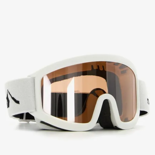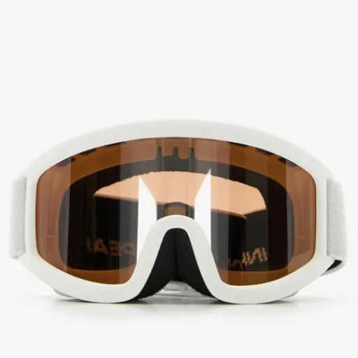 Mountain Peak kinder skibril. Deze witte skibril heeft een oranje gekleurde lens. Voorzien van een stevige, elastische bevestigingsband met veel stretch. Dit zorgt voor veel draagcomfort. De lens is voorzien van UV 400 bescherming en een anti-fog coating. De bril heeft dubbel layer foam rondom de lens.