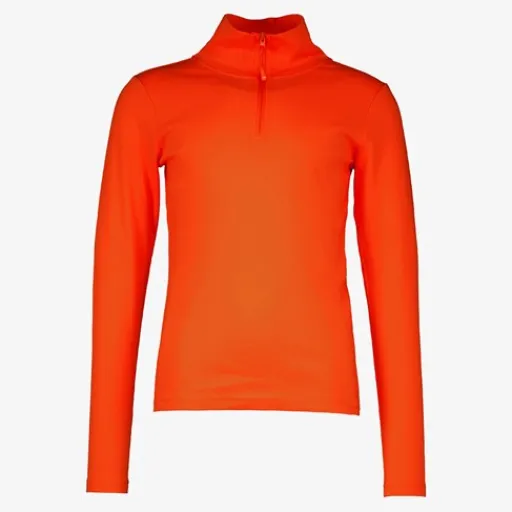 Oranje skipully voor jongens en meisjes uit de Mountain Peak collectie. Voorzien van lange mouwen en een hoge kraag met ritssluiting. De pully bevat stretch voor een comfortabele pasvorm en voldoende bewegingsvrijheid. Vervaardigd van ademend en warmteregulerend materiaal. Gemaakt van 60% katoen en 40% polyester.ΒΆ