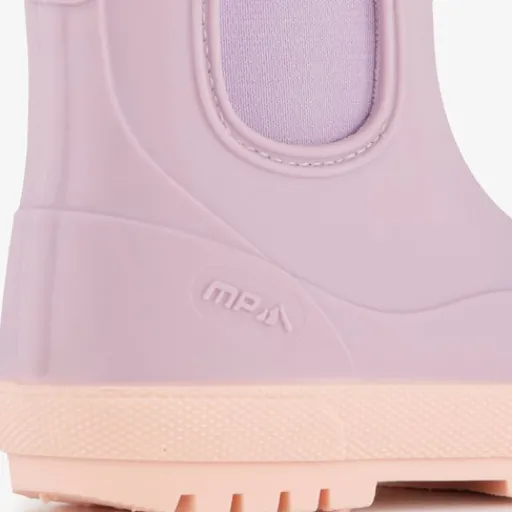 Lila regenlaarzen voor kids van Mountain Peak. Deze regenlaarsjes zijn waterbestendig en zijn voorzien van twee aantreklusjes op de schacht, en elastische inzetten voor een makkelijke instap. Gemaakt van PVC met een binnenwerk en binnenzool van textiel. Deze is uitneembaar.