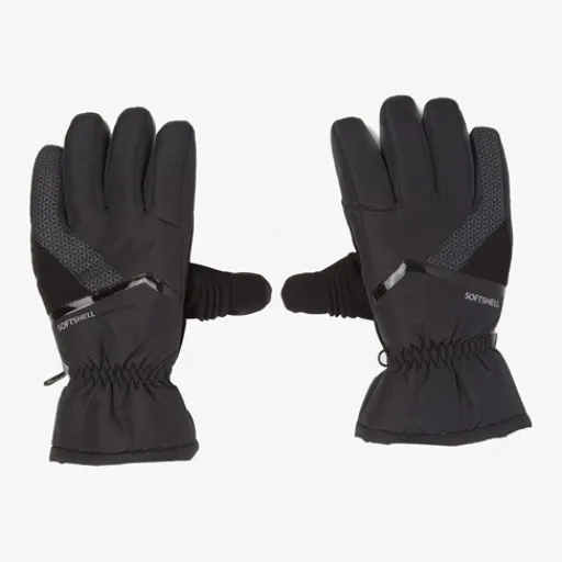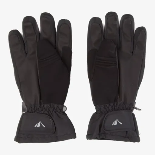Zwarte skihandschoenen voor dames uit de Mountain Peak collectie. Voorzien van elastiek en klittenbandsluiting rond de polsen zodat ze goed aansluiten om de handen en beschermen tegen kou. De skihandschoenen hebben ruw materiaal op de handpalmen voor extra versteviging en grip. De soepele fleece stof zorgen voor veel draaggemak en optimale bewegingsvrijheid. De handschoenen hebben een zachte, warme Thinsulate voering die ademend, warmte-isolerend en vochtwerend is. Door het handige haakje kun je de skihandschoenen makkelijk bij elkaar bewaren. Gemaakt van polyester en katoen.