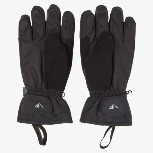 Zwarte skihandschoenen voor heren uit de Mountain Peak collectie. Voorzien van elastiek en klittenbandsluiting rond de polsen zodat ze goed aansluiten om de handen en beschermen tegen kou. De skihandschoenen hebben ruw materiaal op de handpalmen voor extra versteviging en grip. De soepele fleece stof zorgen voor veel draaggemak en optimale bewegingsvrijheid. De handschoenen hebben een zachte, warme Thinsulate voering die ademend, warmte-isolerend en vochtwerend is. Door het handige haakje kun je de skihandschoenen makkelijk bij elkaar bewaren. Gemaakt van polyester en katoen.