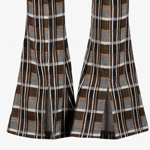 MyWay Geruite meisjes flared broek bruin grijs Outlet