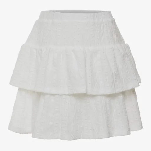 Witte MyWay rok voor meisjes. Voorzien van een elastische tailleband en ruches aan de onderkant. Het rokjes heeft een bewerking in de stof en is gemaakt van 98% polyester en 2% elastaan.