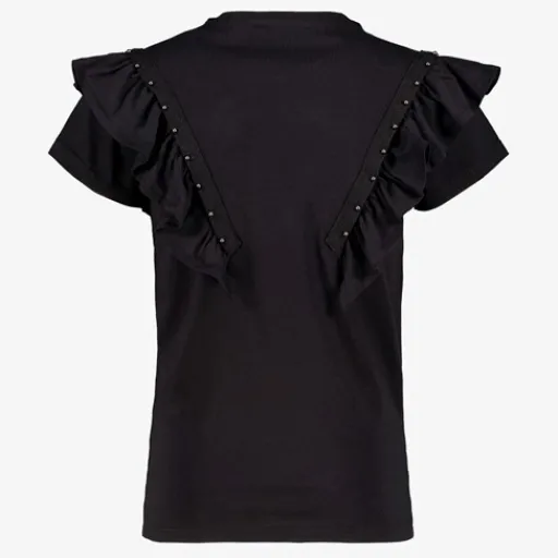 Zwart T-shirt voor meisjes uit de MyWay collectie. Voorzien van een ronde hals en korte mouwen met ruches. Het T-shirt is gemaakt van 100% katoen.