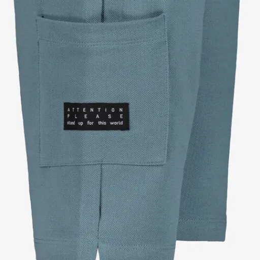 Blauwe sweatshort voor kinderen uit de Name it collectie. Voorzien van aantrekkoordjes en een verstelbare tailleband aan de binnenzijde. Hiermee kan je de short strakker trekken of losser maken. De korte broek heeft twee steekzakken aan de voorzijde en een zak met tekstopdruk op de bovenbeen. Gemaakt van 100% katoen.