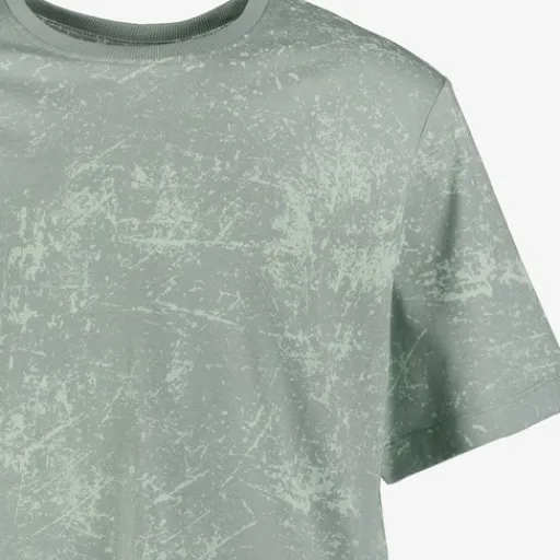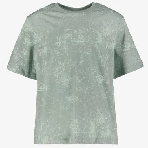 Grijsgroen Name It VENZEL Blue Mirage Regular Fit T-shirt voor jongens. Voorzien van korte mouwen, een ronde hals en een grafische, witte print. Het shirt is gemaakt van 100% katoen.
