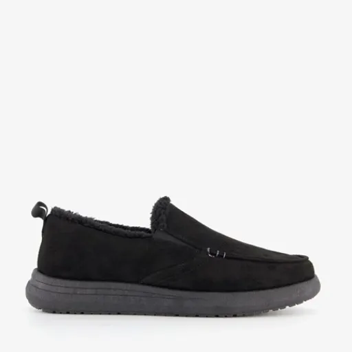 Zwarte pantoffels voor heren van Natuform. Gemaakt van textiel, een binnenwerk van textiel en een stevige, rubberen zool. De pantoffels hebben een aantreklusje op de hak voor een makkelijke instap. Het voetbed is gemaakt van badstof en is uitneembaar. De comfortabele pantoffels hebben een zachte, warme voering en de profielzool zorgt voor een goede grip.