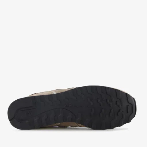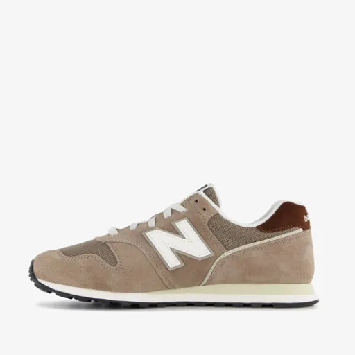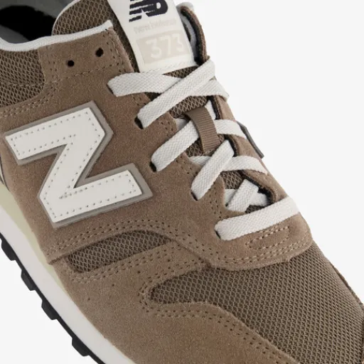 Beige New Balance 373 sneakers voor heren. Het buitenwerk is gemaakt van suède, het binnenwerk van textiel en de profielzool is van rubber. Voorzien van een vetersluiting en een comfortabele binnenzool van textiel. Deze is uitneembaar. De sneakers hebben witte merkopdrukken, een bruine inzet op de hak en wit-zwarte buitenzolen.