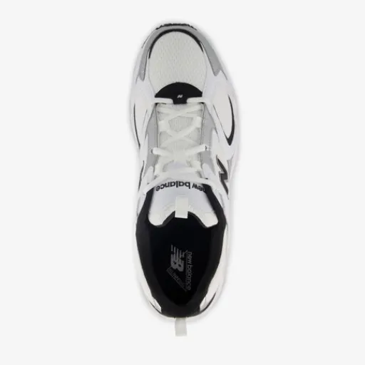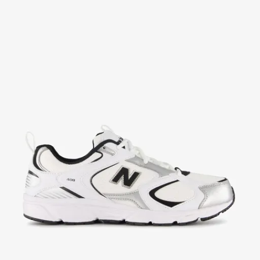 Witte New Balance 408 sneakers voor heren. Het buitenwerk is gemaakt van textiel en imitatieleer, het binnenwerk van textiel en de stevige zool met profiel is van rubber. Voorzien van een vetersluiting en aantreklusjes op de hak en tong. De sneaker hebben zilverkleurige en zwarte details op het boven en zwarte merkopdrukken. Binnenzool is niet uitneembaar.